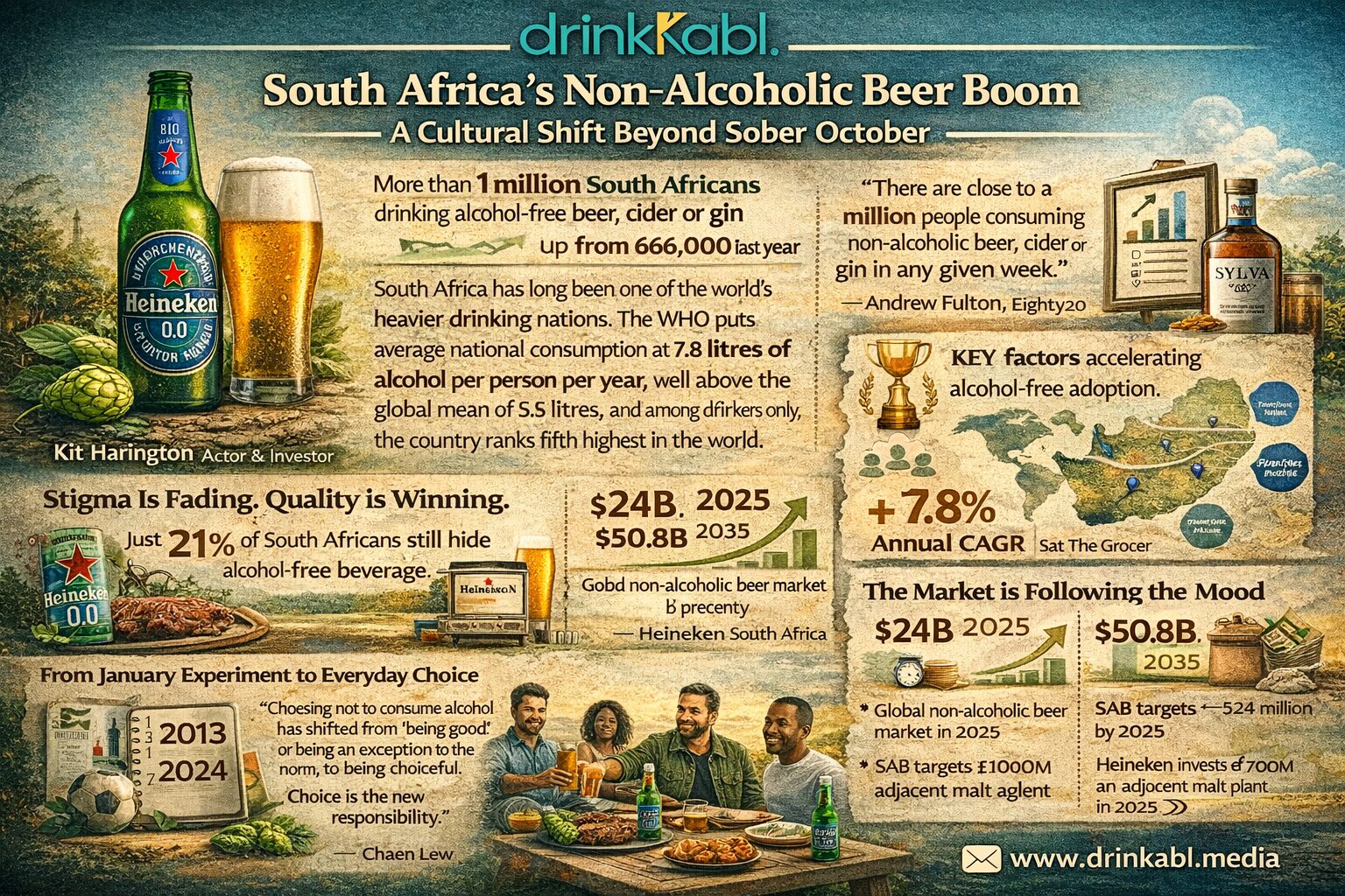 Research by Heineken in collaboration with Professor Charles Spence, an experimental psychologist at Oxford, found that 21% of Gen Z drinkers in markets from the UK to Brazil admitted to hiding their non-alcoholic drinks to avoid social pressure. In South Africa, a country where drinking culture is deeply embedded in braai and social life, that pressure has historically been particularly acute.