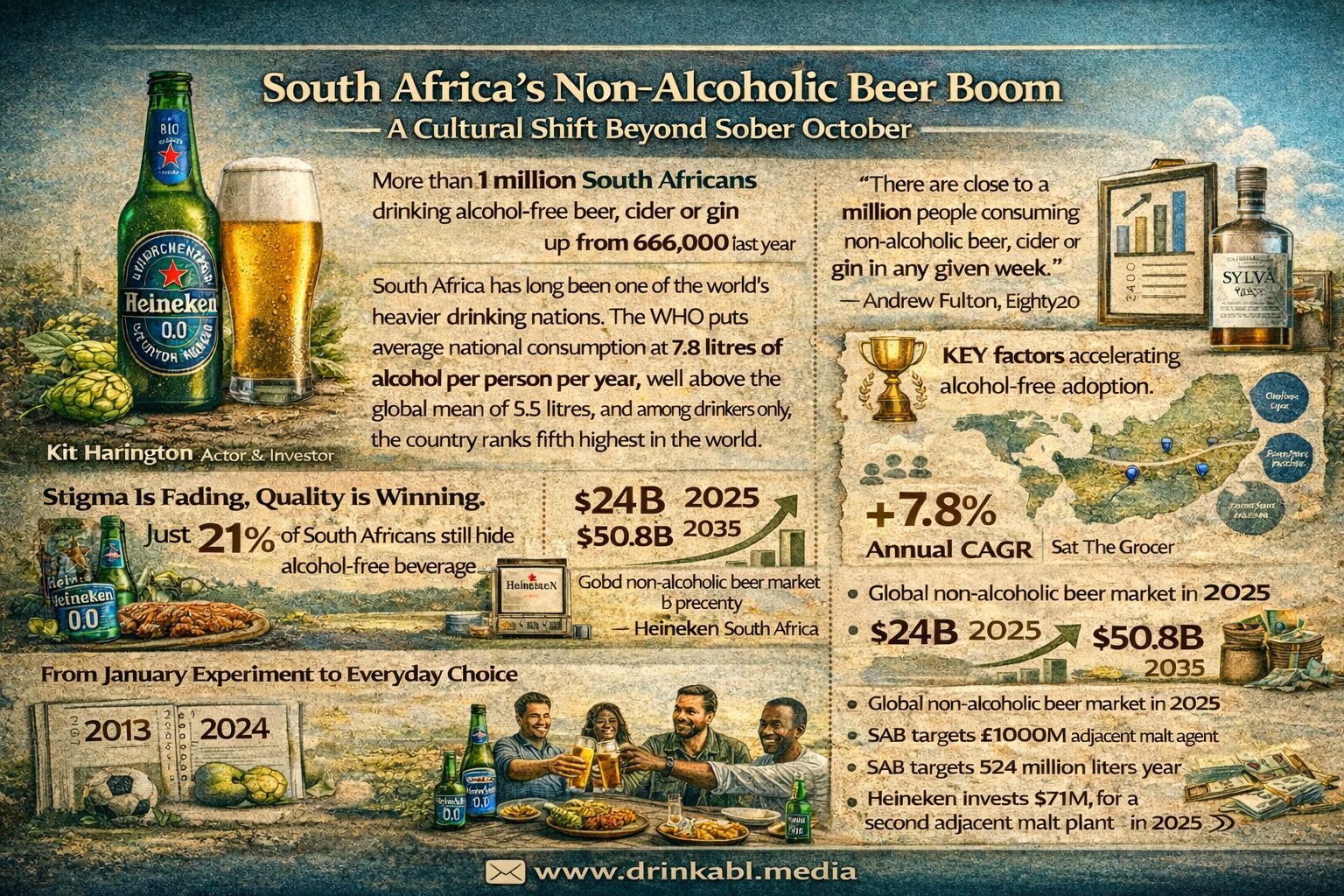 South African Breweries, meanwhile, has set a target of alcohol-free and low-alcohol beers accounting for 20% of its total production. The industry’s broader investment trajectory, including a €100 million malting facility investment by Soufflet Malt adjacent to Heineken’s Sedibeng Brewery in 2025 , underscores that producers are treating this as a structural shift, not a marketing moment.