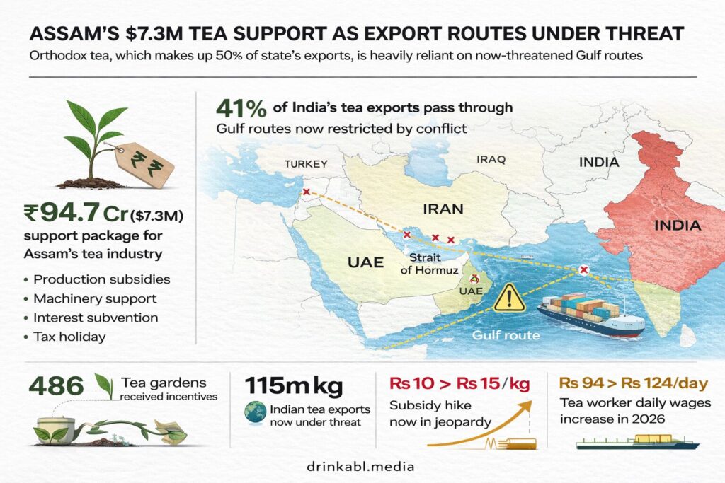 With coordinated US-Israel strikes on Iran having triggered the closure of the world’s most critical oil and trade waterway, India’s most iconic beverage industry finds itself caught between record momentum and real peril, and Assam just wrote a cheque it may struggle to cash.