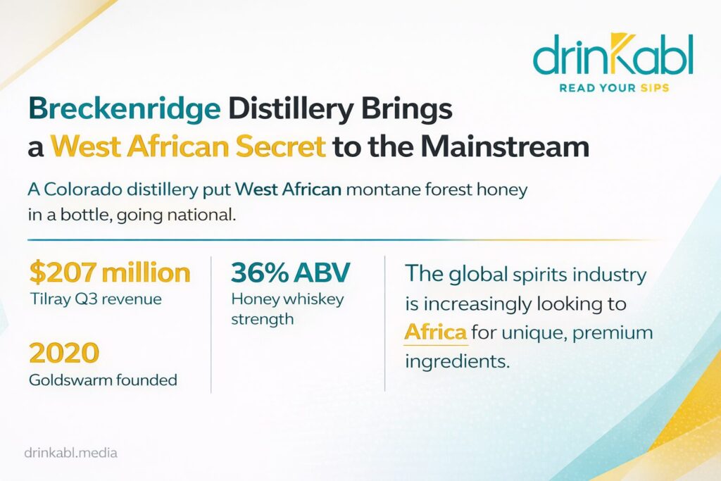 Breckenridge Distillery, an award,winning craft spirits brand under Tilray Brands, has relaunched its Honey Whiskey, now infused with Goldswarm Raw Honey from Nigeria, bottled at 36% ABV (72 proof). The move is more than a product refresh. It is a statement about where premium ingredients are coming from, and how the global spirits industry is looking to Africa in new ways.