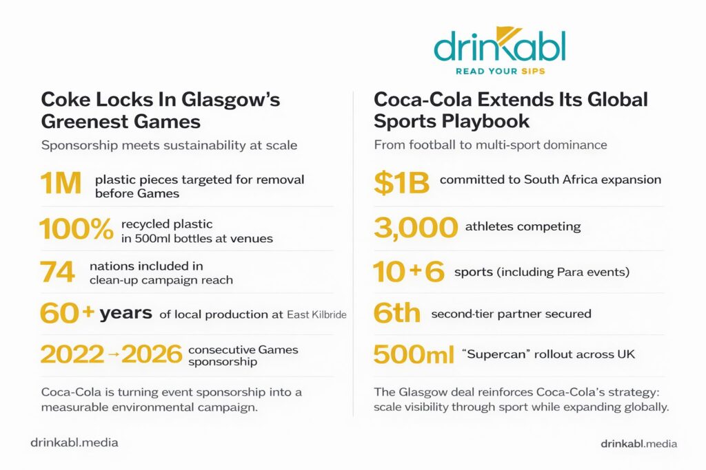 Beyond pouring rights, the deal carries a meaningful environmental dimension. CCEP is partnering with Keep Scotland Beautiful on a project to clean up the riverbanks closest to the Commonwealth Games sports venues near the River Clyde. The waste collected will support a campaign running as part of the King’s Baton Relay across all 74 Commonwealth nations and territories, with a mission to prevent one million pieces of plastic from entering Commonwealth waterways before the Games begin. All CCEP bottles sold at venue outlets will be recyclable, with the 500ml bottle range made from 100% recycled plastic.