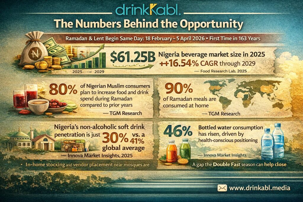 On 18 February 2026, Ramadan and Lent began on the same day , a convergence last seen in 1863, unlikely to recur until 2189. For the first time in living memory, Nigeria’s Muslim and Christian populations are fasting simultaneously, covering virtually the entire country. For the beverage trade, this is not just a cultural moment. It is a six-week dual window, from 18 February through Easter on 5 April, that represents the most concentrated faith-driven demand opportunity in generations.