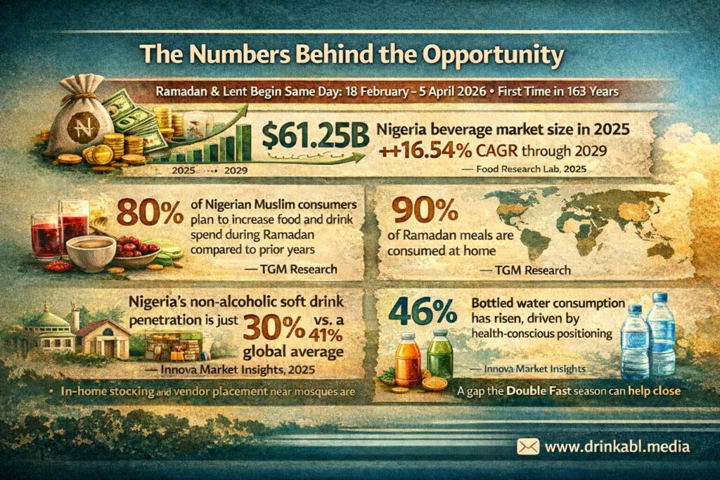 On 18 February 2026, Ramadan and Lent began on the same day , a convergence last seen in 1863, unlikely to recur until 2189. For the first time in living memory, Nigeria’s Muslim and Christian populations are fasting simultaneously, covering virtually the entire country. For the beverage trade, this is not just a cultural moment. It is a six-week dual window, from 18 February through Easter on 5 April, that represents the most concentrated faith-driven demand opportunity in generations.