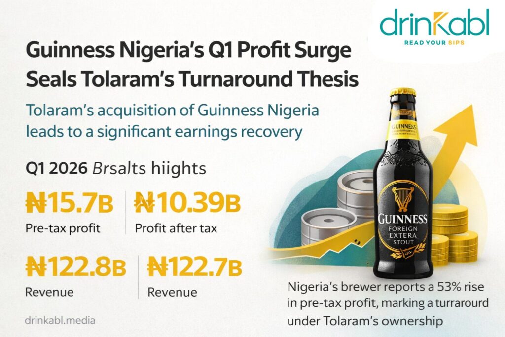 Long before Guinness Nigeria Plc filed its Q1 2026 numbers with the Nigerian Exchange, the shape of this result had been telegraphed by a series of deliberate, high-stakes moves. The Tolaram Group’s completion of its acquisition of Diageo’s majority stake, finalised in late 2024, ushered in new leadership, a restructured cost framework, and a clear mandate: return the brewer to consistent profitability in a market that had punished it for years. That mandate, it now appears, is being delivered ahead of schedule.