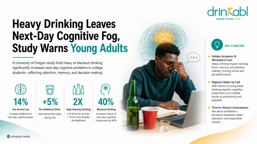 The findings carry direct relevance for Nigeria, a country where alcohol culture is deeply embedded in social, celebratory and even professional settings, and where public health discourse around drinking has historically focused on long-term liver disease rather than day-after cognitive function.