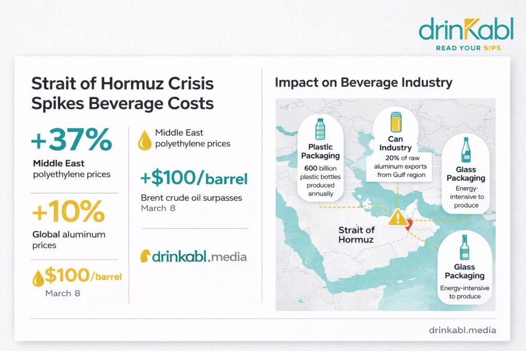 It is no longer news that every bottle of water, every can of drink and every glass of wine carries a price tag shaped by forces most consumers never see. Today, these forces include the cost of oil, the price of aluminum, the availability of plastic, the length of a shipping route, among others. Since late February 2026, all of those forces have been upended at once. The closure of the Strait of Hormuz, one of the most critical waterways in the world, is sending shockwaves through the global beverage industry. And in this week’s Drinkabl’s deep dive, we explore how.