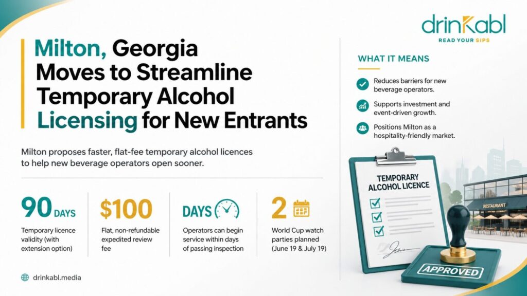 For beverage operators looking to open in Milton, Georgia, the path from inspection to first pour has often been longer than the market warrants. The city’s existing temporary alcoholic beverage licensing process carried enough friction to delay qualified applicants during a period when the on-premise sector, particularly in suburban Atlanta markets, has seen renewed investment and format experimentation.