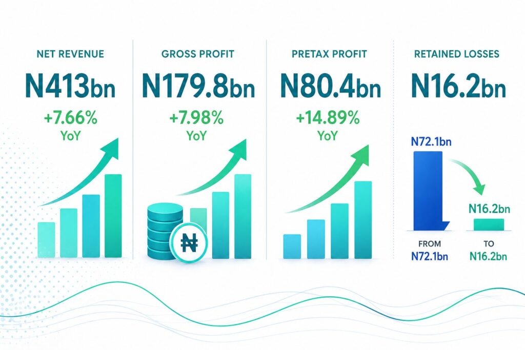 “Retained losses improved significantly to N16.2 billion from N72.1 billion, lifting total equity to N616.3 billion from N560.2 billion.”