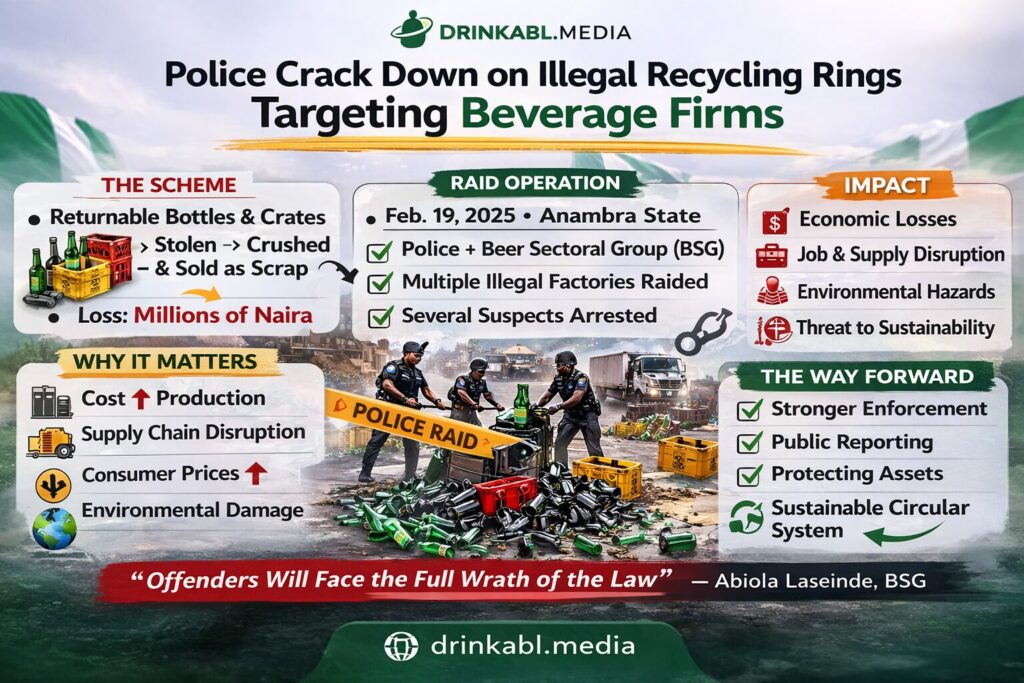 Every bottle has a second life, and in Nigeria’s South-east, criminal networks had figured out exactly how to profit from it. Not by returning them, as the law requires, but by smashing them into raw material and selling the pieces. The scheme has cost beverage manufacturers millions of naira and gone largely unchecked , until a coordinated police raid tore through several Anambra factories and blew the operation wide open.