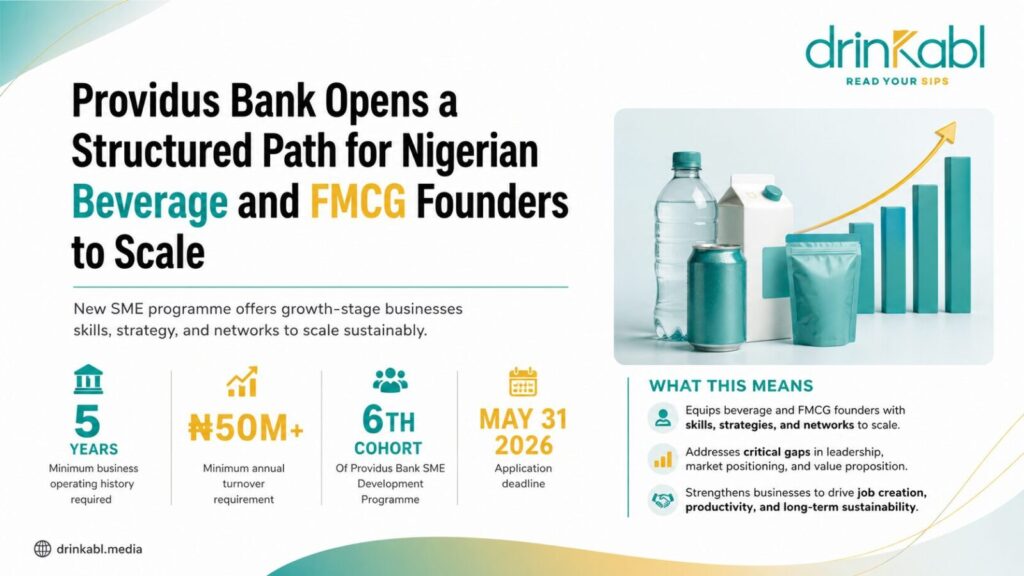 Providus Bank has officially opened applications for the sixth cohort of its flagship SME development programme, delivered in partnership with the Enterprise Development Centre. For founders operating across Nigeria’s beverage and FMCG sectors, the timing carries particular weight.
